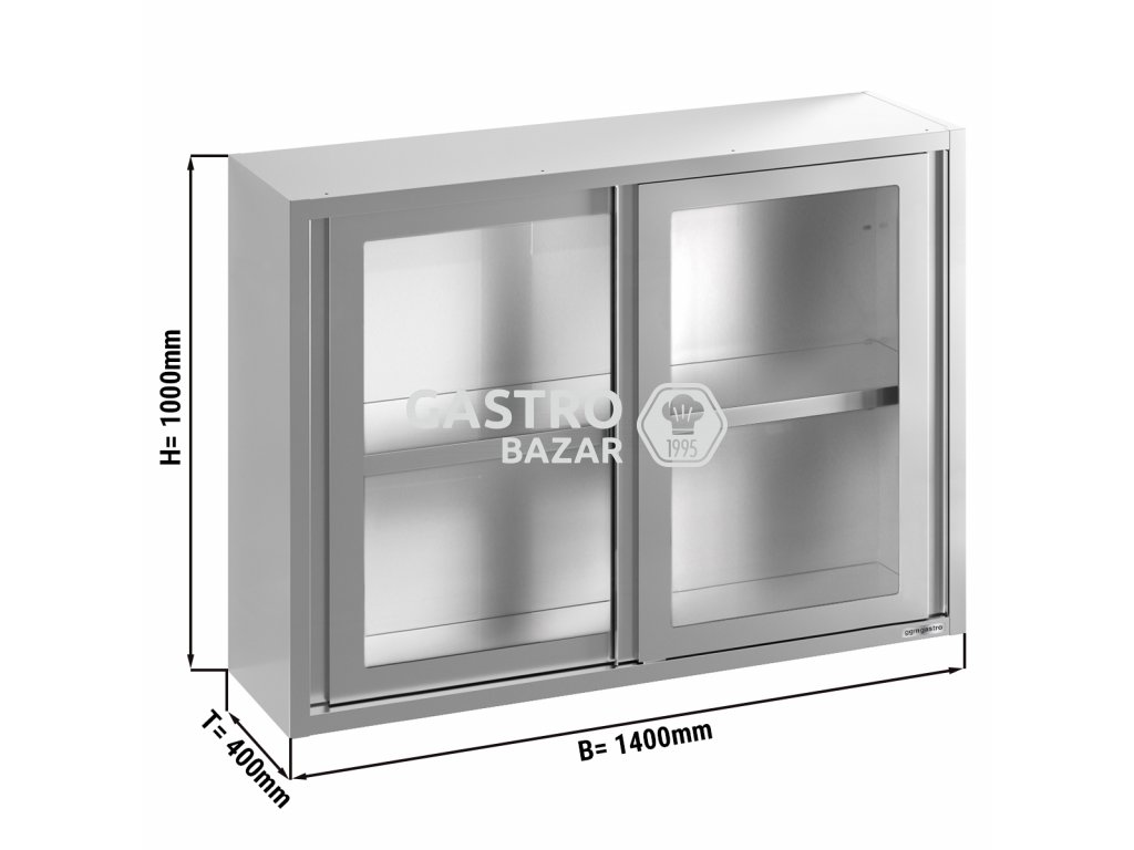 Commercial Stainless Steel Wall-Mounted Cabinet – 1400×400×1000 mm – 2 Glass Sliding Doors