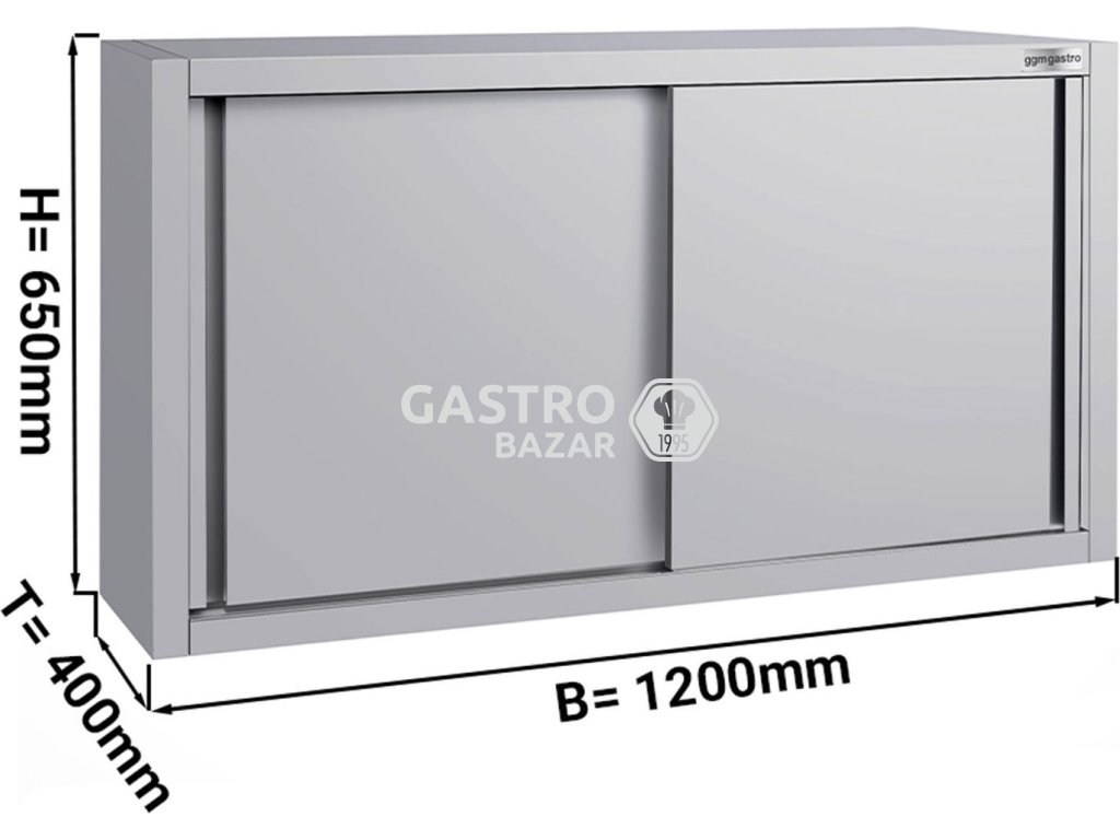 Nerezová nástěnná skříň ECO - 1,2 m - s posuvnými dveřmi - vysoká 0,65 m