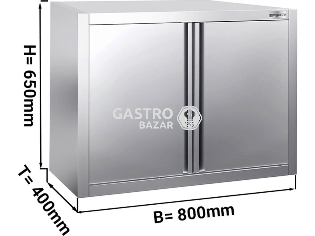 Nerezová nástěnná skříň PREMIUM 0,8 m - s dveřmi - vysoká 0,65 m