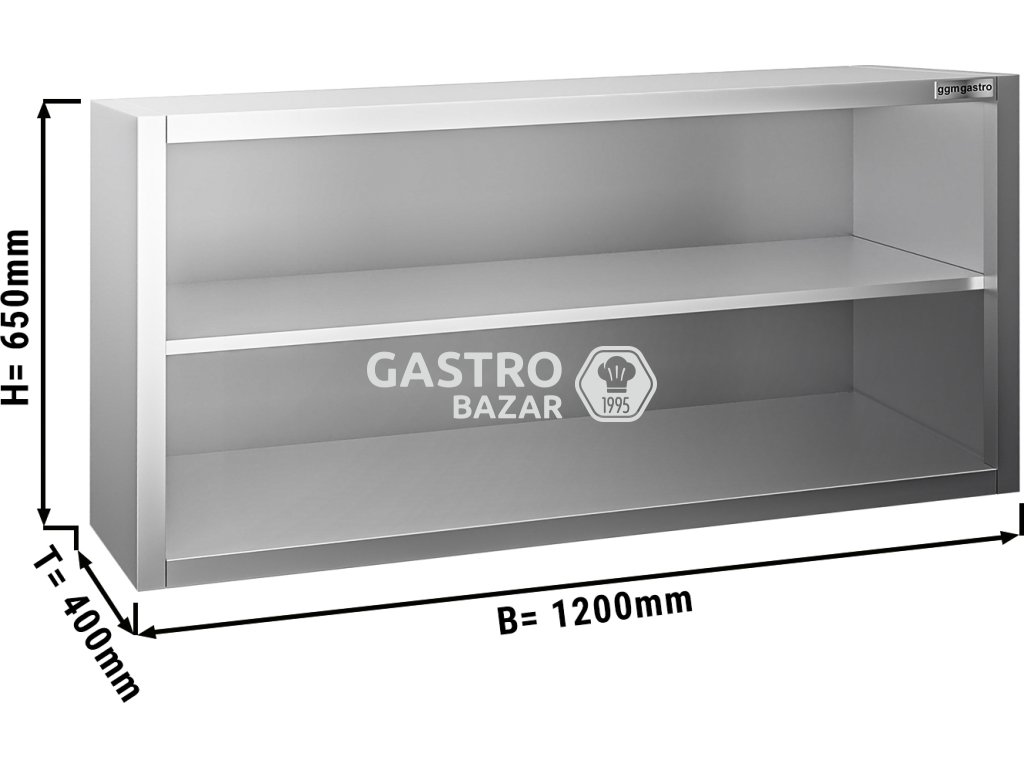 Nerezová nástěnná skříň PREMIUM 1,2 m - bez posuvných dveří - vysoká 0,65 m