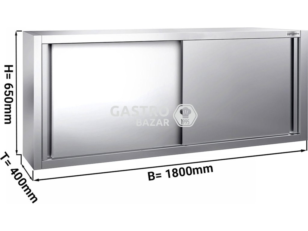 Nerezová nástěnná skříň PREMIUM 1,8 m - s posuvnými dveřmi - vysoká 0,65 m
