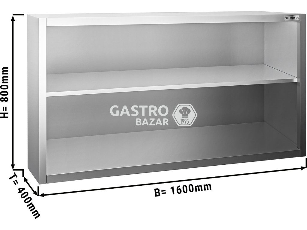 Nerezová nástěnná skříňka 1,6 m - bez posuvných dveří - vysoká 0,8 m