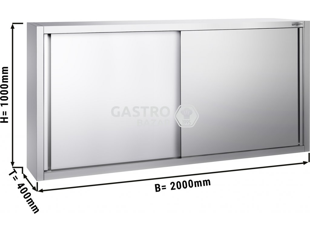 Nerezová nástěnná skříňka 2,0 m - s posuvnými dveřmi - výška 1,0 m