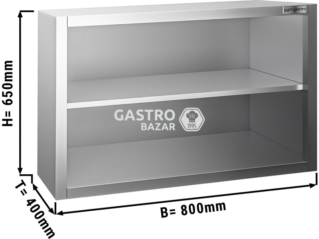 Nerezová nástěnná skříňka PREMIUM 0,8 m - bez dveří - vysoká 0,65 m