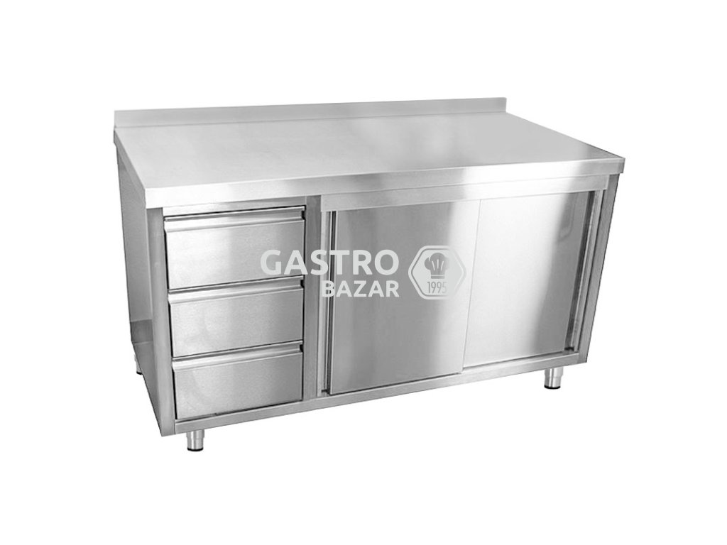 Pracovní skříňka ECO z nerezové oceli - 1,6 m - se 3 šuplíky vlevo & obkladovým panelem