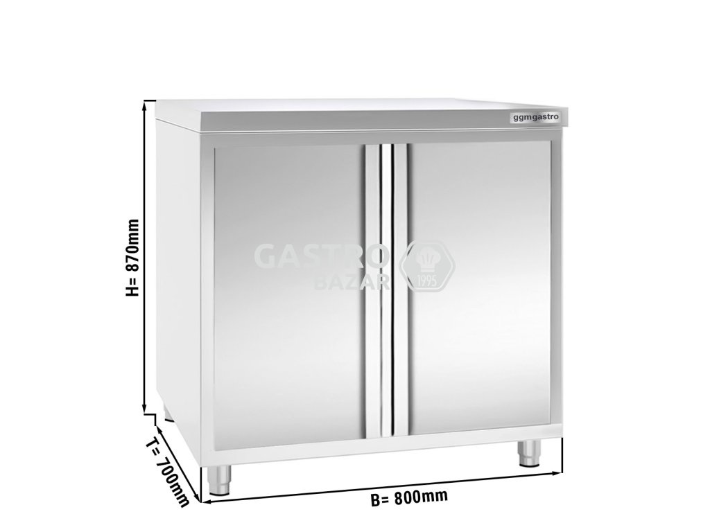 Nerezová pracovní skříň PREMIUM - 0,8 x 0,7m - s dvojitými dveřmi