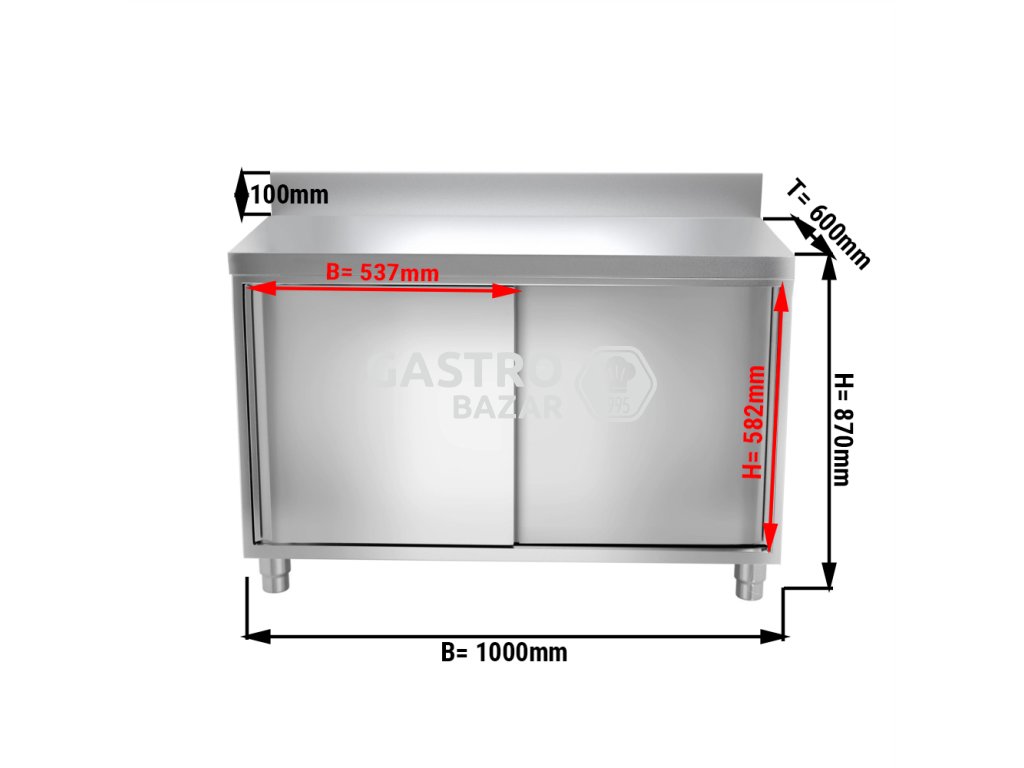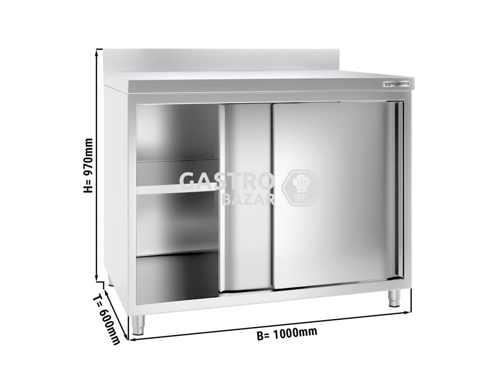 Nerezová pracovní skříň PREMIUM - 1,0 x 0,6m - s posuvnými dveřmi a zadním lemem