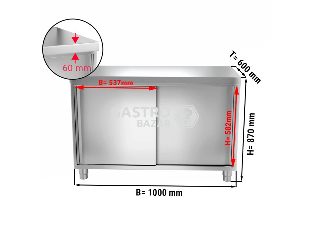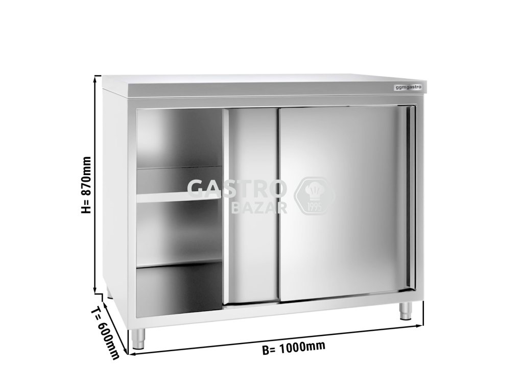 Nerezová pracovní skříň PREMIUM - 1,0 x 0,6m - s posuvnými dveřmi