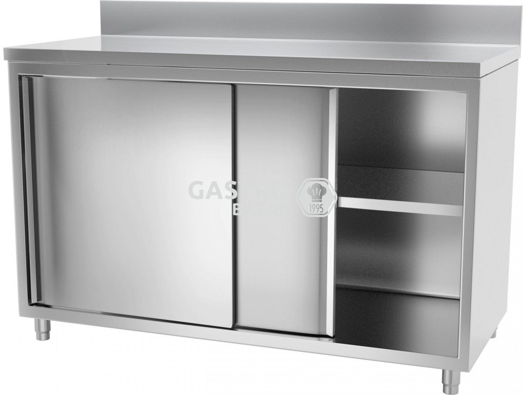 Pracovní skříňka PREMIUM z nerezové oceli - 1,4 m - s posuvnými dveřmi a obkladovým panelem