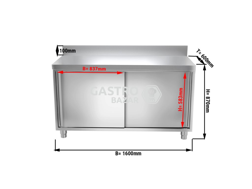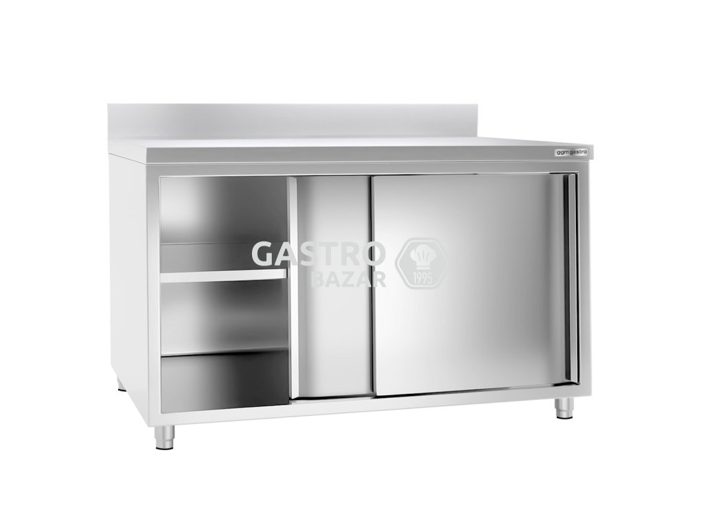 Nerezová pracovní skříň PREMIUM - 1,6 x 0,6 m - s posuvnými dveřmi a zadním lemem