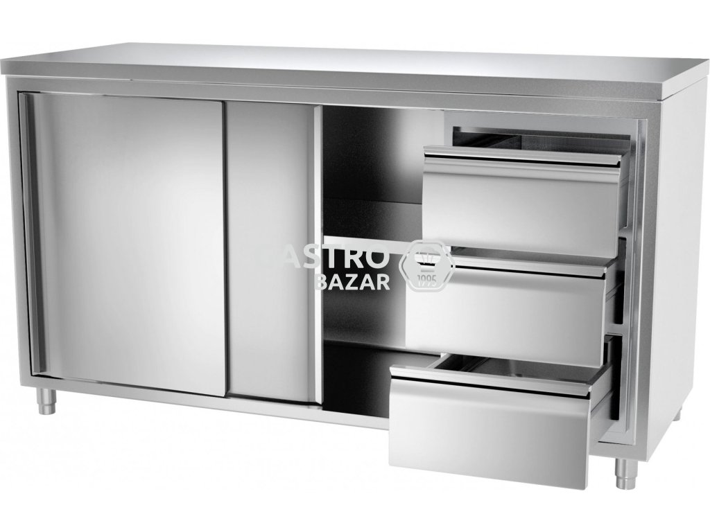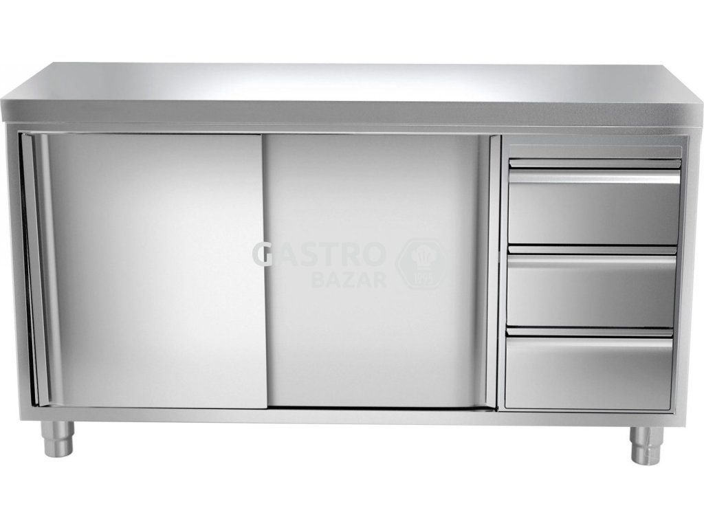 Nerezová pracovní skříň PREMIUM - 1,6 x 0,6m - se 3 zásuvkami na pravé straně