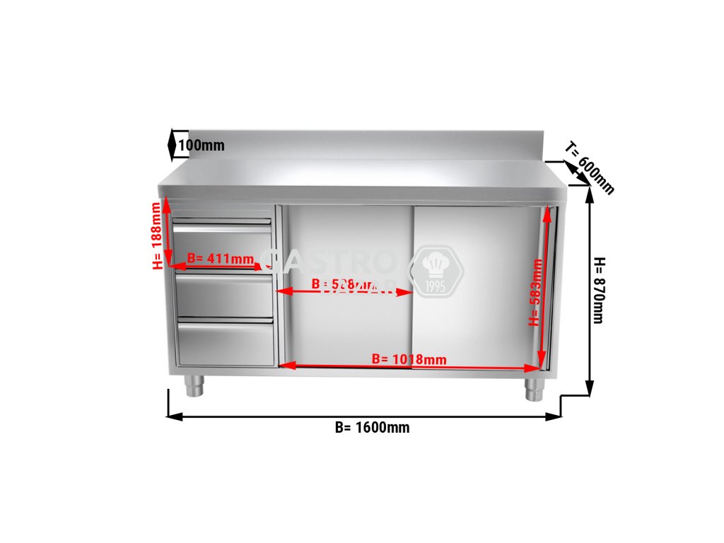 - Tělo, zásuvky a dveře z vysoce kvalitní nerezové oceli AISI 304