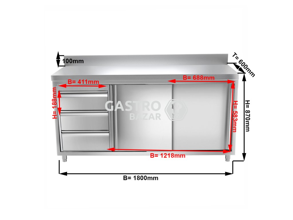 - Tělo, zásuvky a dveře z vysoce kvalitní nerezové oceli AISI 304