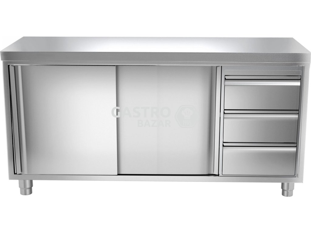 Nerezová pracovní skříň PREMIUM - 2,0 x 0,6 m - se 3 zásuvkami na pravé straně