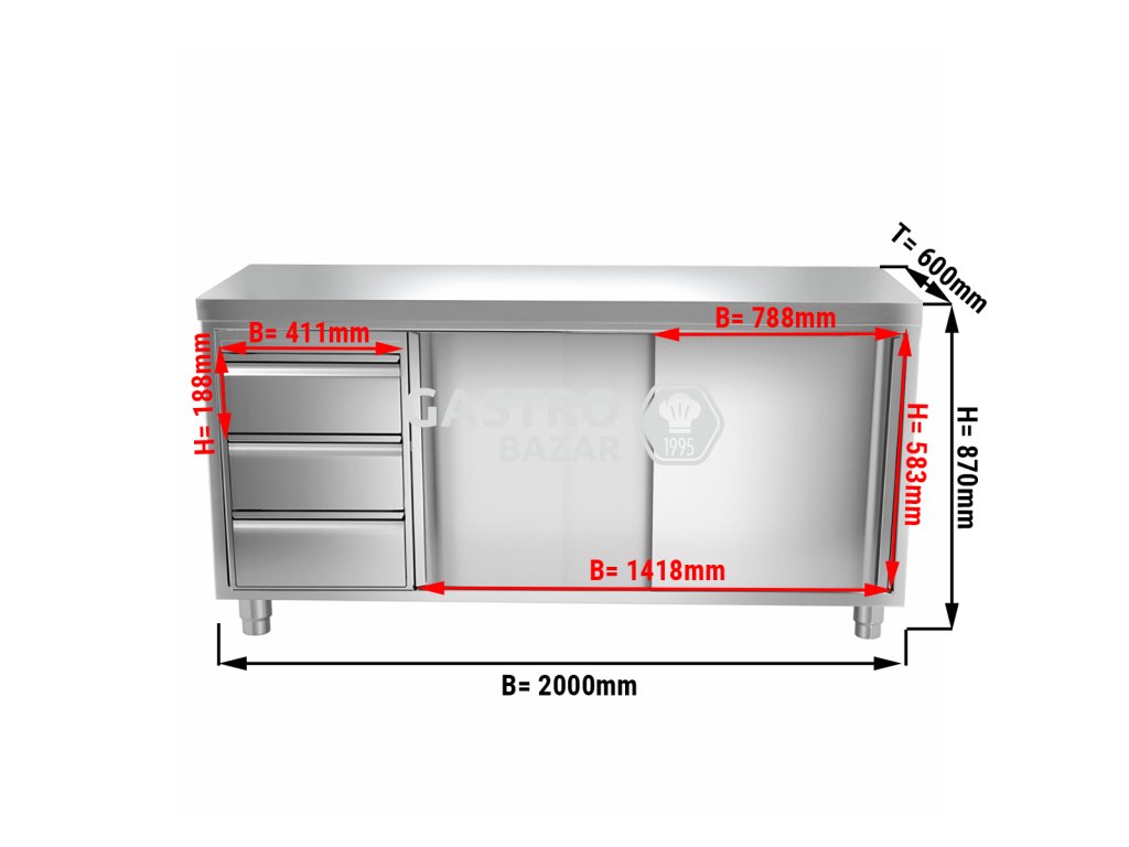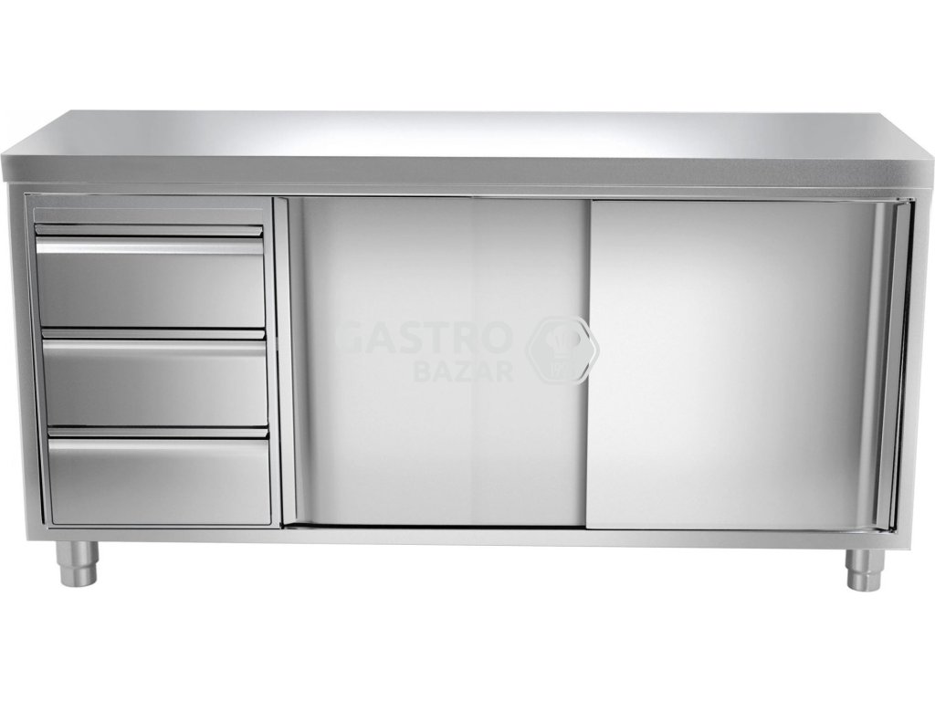 Nerezová pracovní skříň PREMIUM - 2,0 x 0,6m - se 3 zásuvkami vlevo