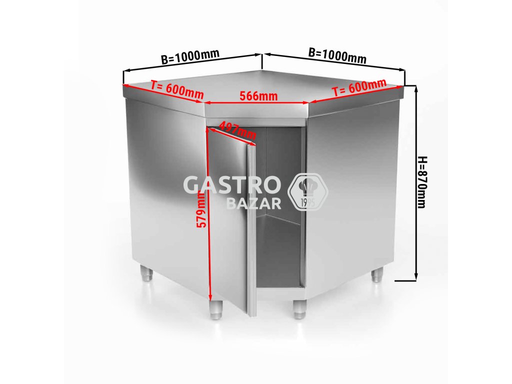 Nerezová rohová pracovní skříňka