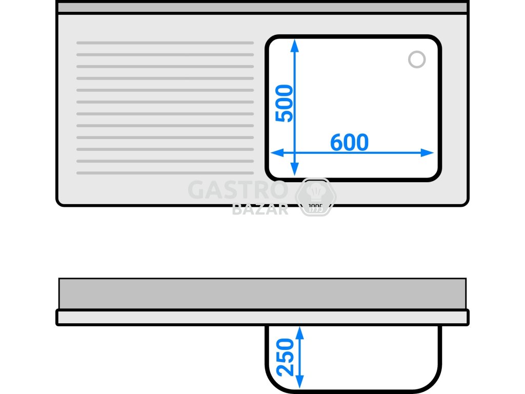 - Vhodný jako dřez na nádobí pro vestavěné myčky nádobí max. 600 mm