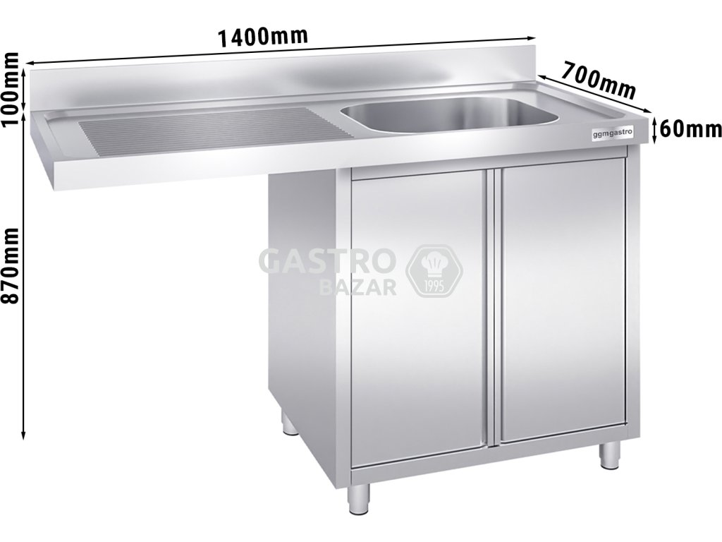 Nerezový dřez 1,4 m, 1 dřez vpravo, pro vestavěné myčky, hloubka 70 cm
