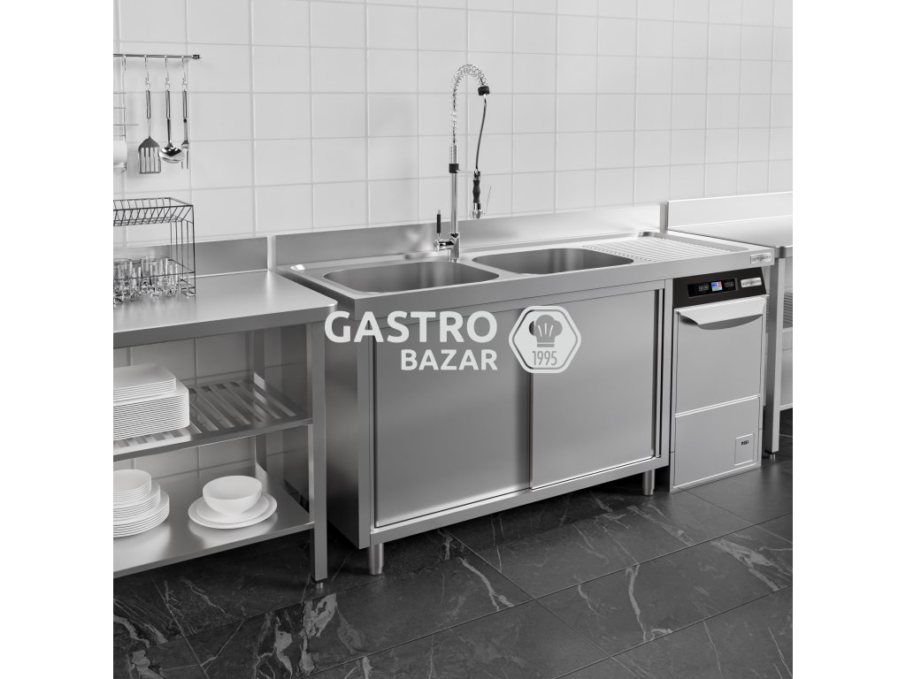 Nerezový dřez 1,6 m, 2 dřezy vlevo, pro vestavěné myčky, hloubka 60 cm