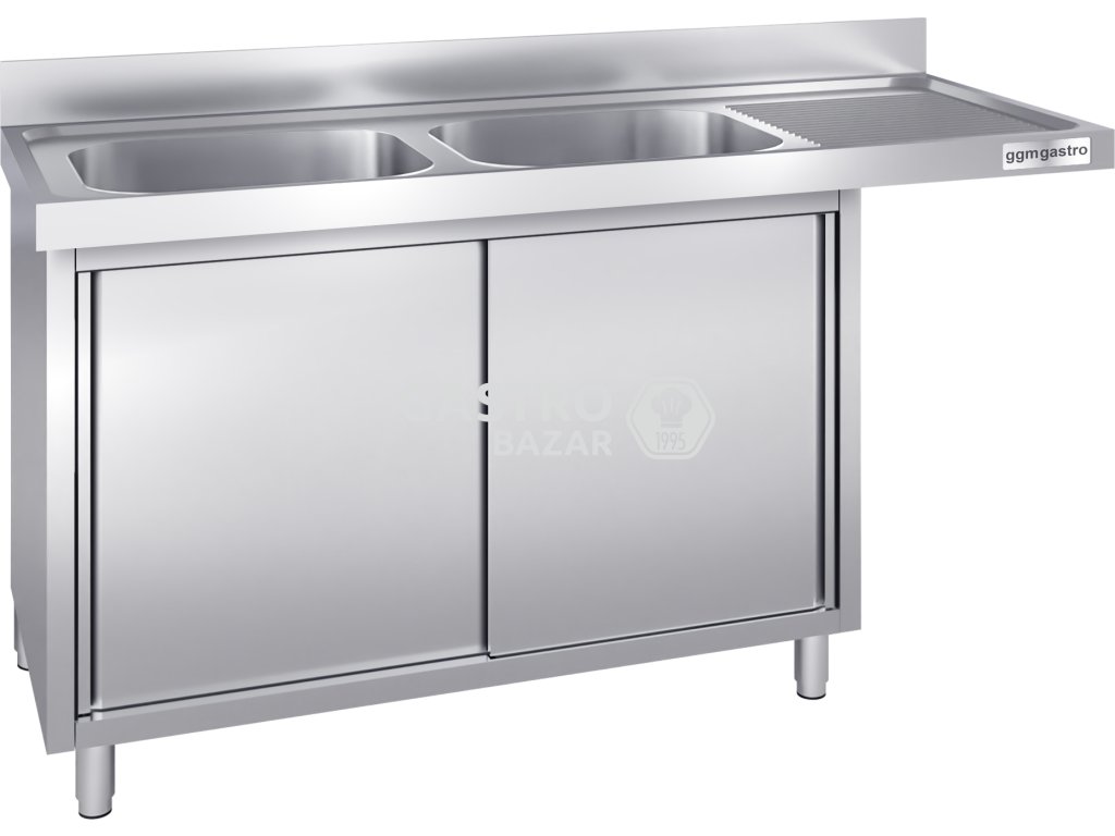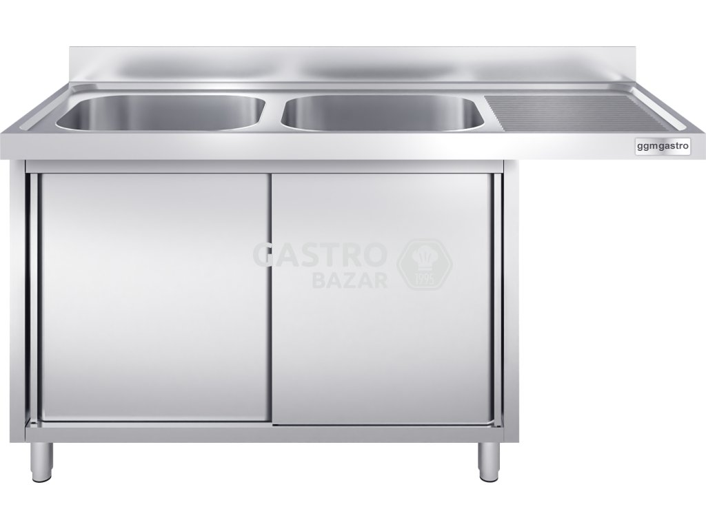 Nerezový dřez 1,6 m, 2 dřezy vlevo, pro vestavěné myčky, hloubka 70 cm