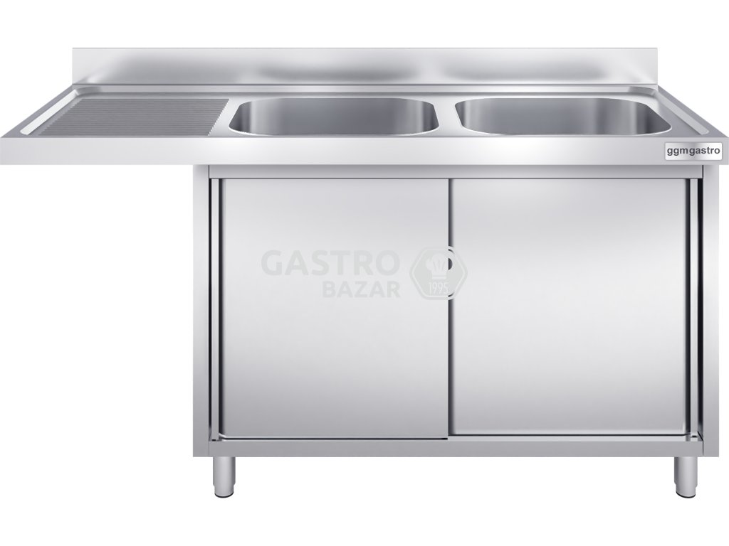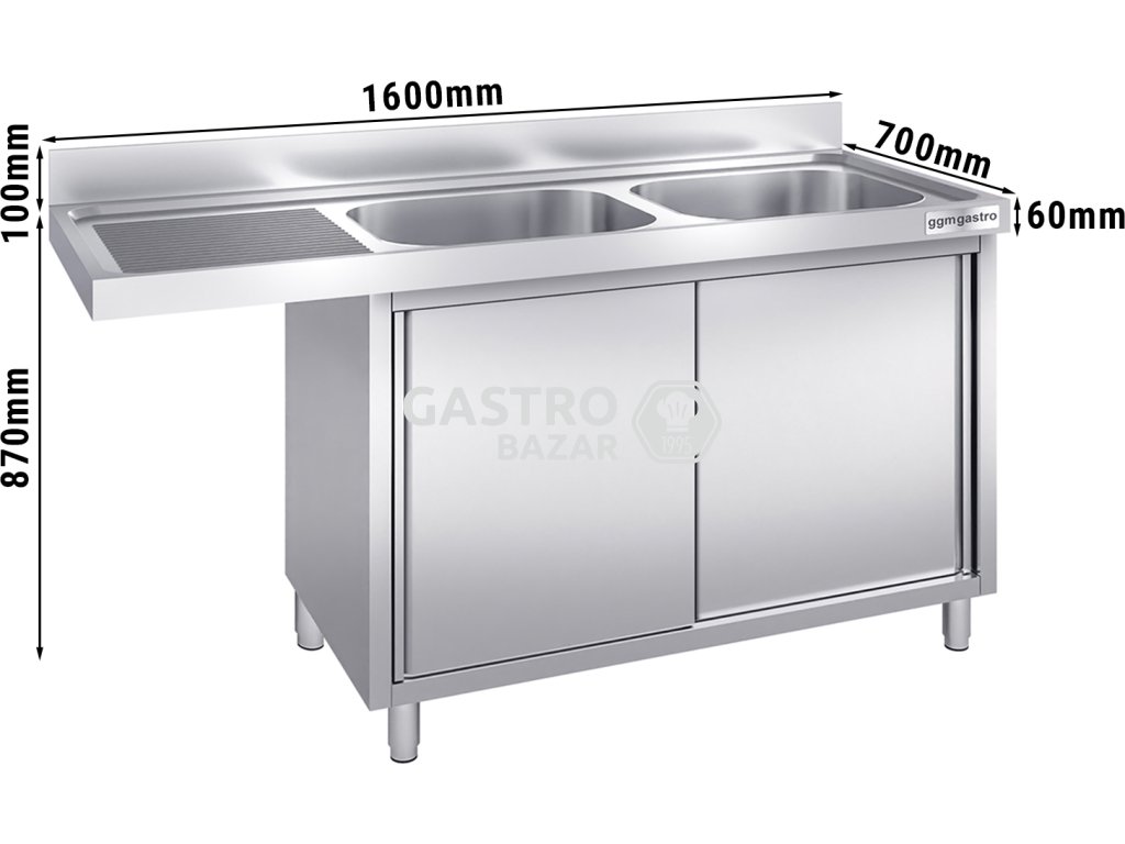 Nerezový dřez 1,6 m, 2 dřezy vpravo, pro vestavěné myčky, hloubka 70 cm