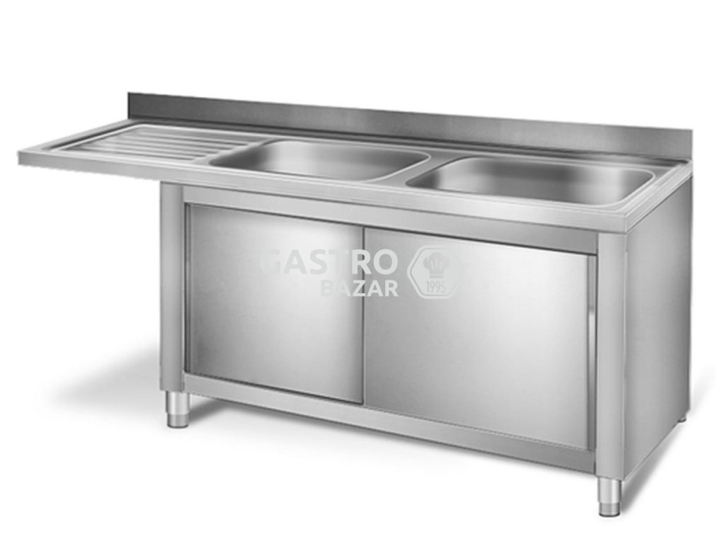 Nerezový dřez 2,0 m, 2 dřezy vpravo, pro vestavěné myčky, hloubka 60 cm