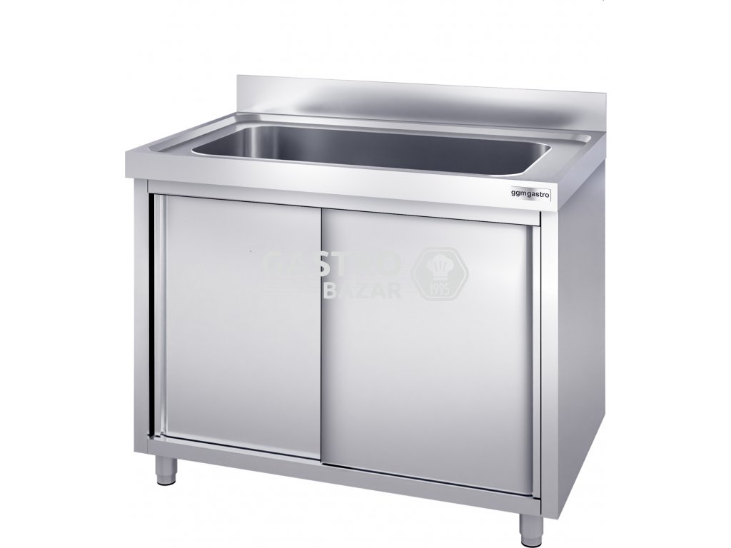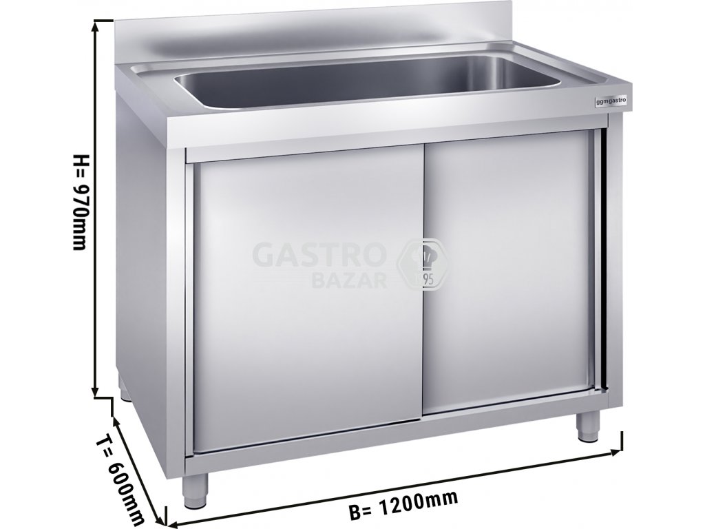 Nerezový dřez na černé nádobí 1,2 m, 1 dřez s posuvnými dveřmi, hloubka 60 cm