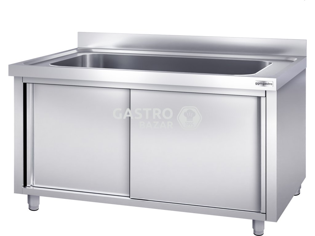 Nerezový dřez na černé nádobí 1,4 m, 1 dřez s posuvnými dveřmi, hloubka 60 cm