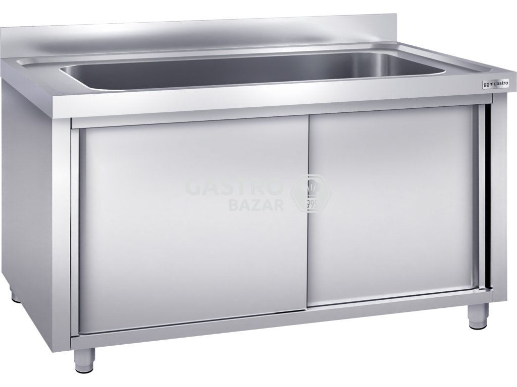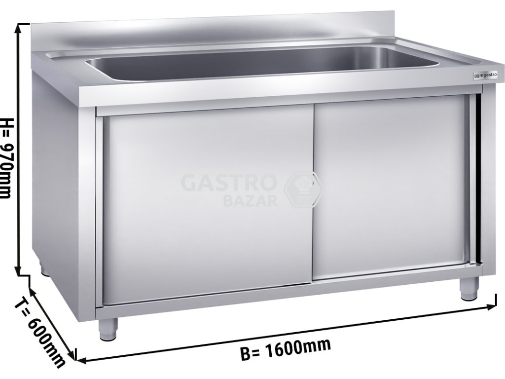 Nerezový dřez na černé nádobí 1,6 m, 1 dřez s posuvnými dveřmi, hloubka 60 cm