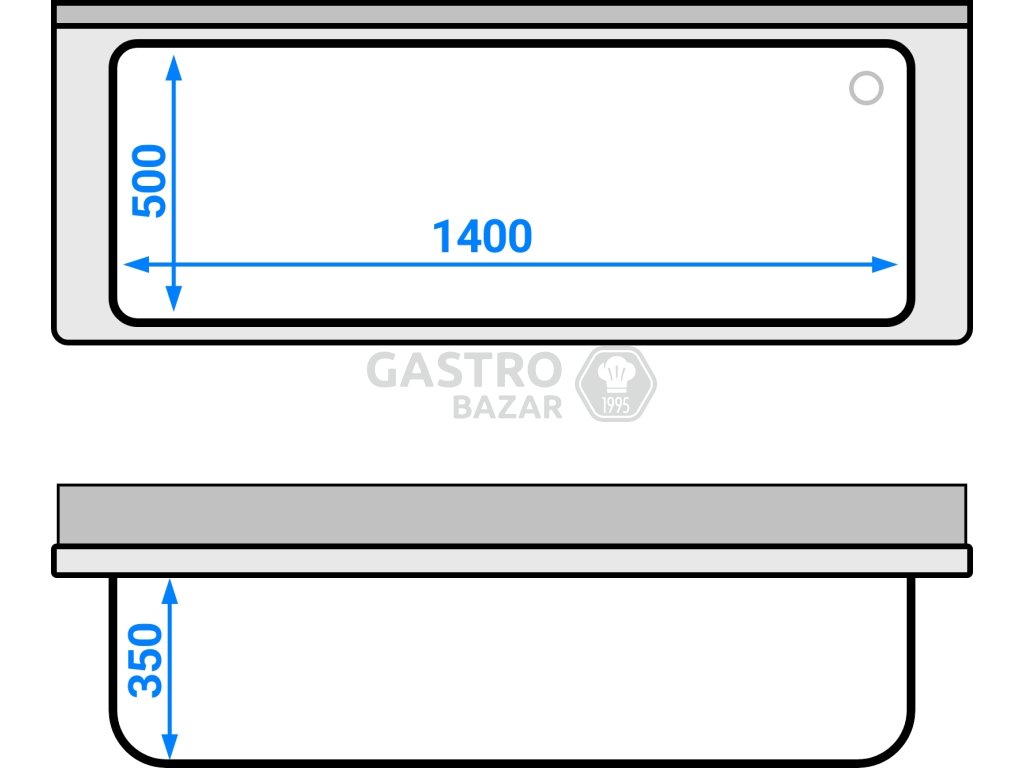 - Rozměry dřezu: Š x H x V: 1400 x 400 x 350 mm