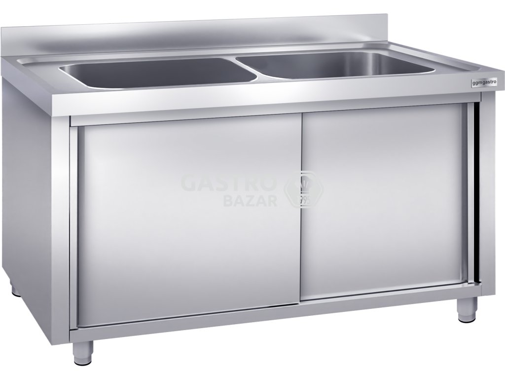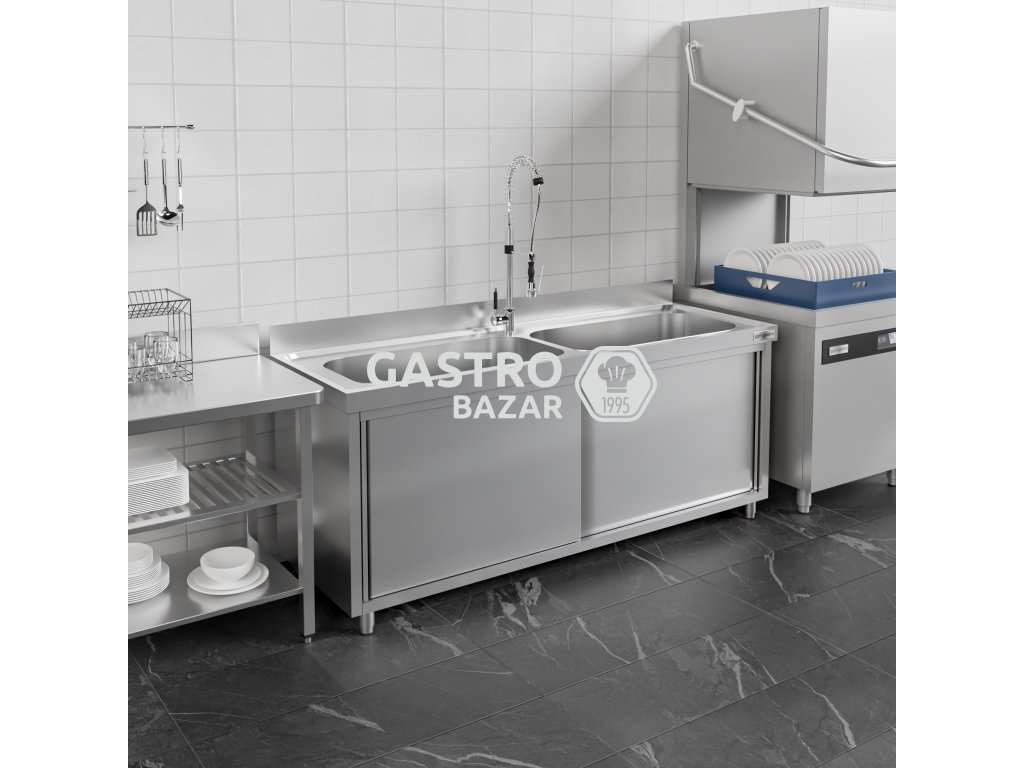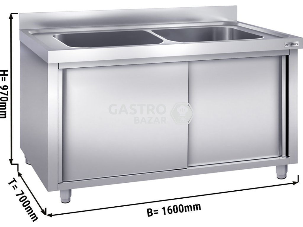 Nerezový dřez na černé nádobí 1,6 m, 2 dřezy s posuvnými dveřmi, hloubka 70 cm