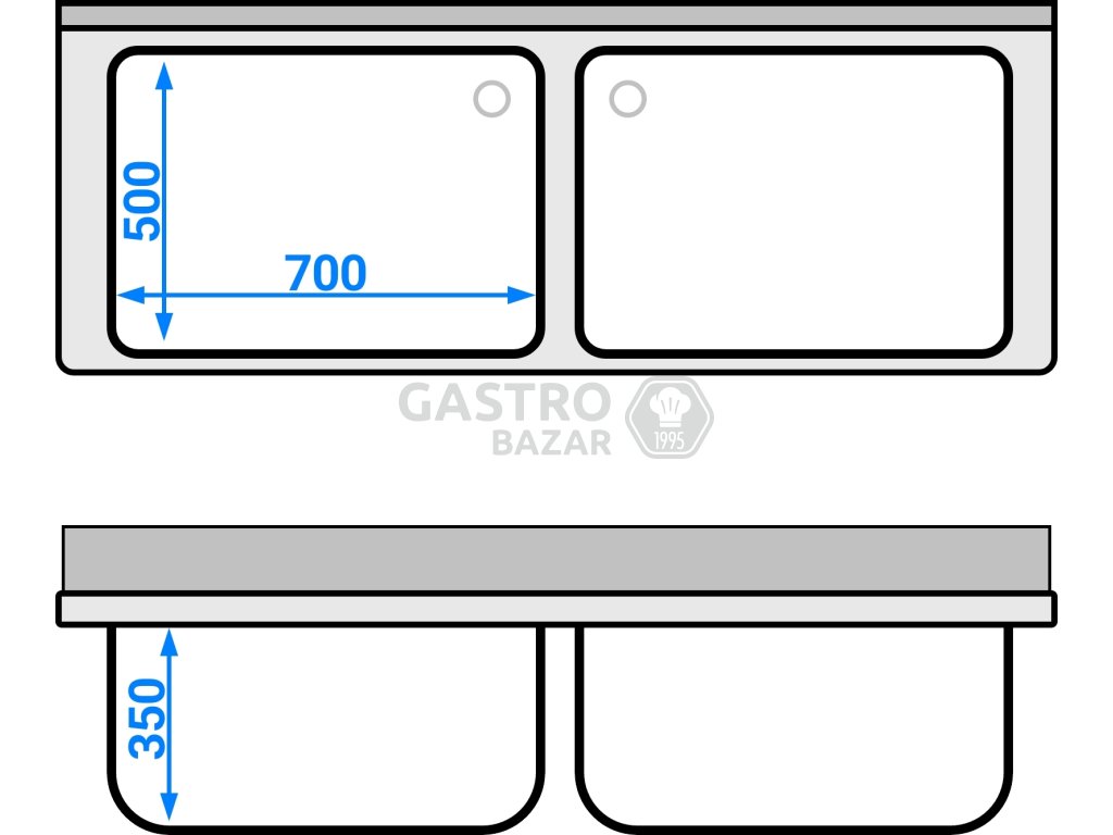 - Rozměry dřezu: Š x H x V: 700 x 500 x 350 mm