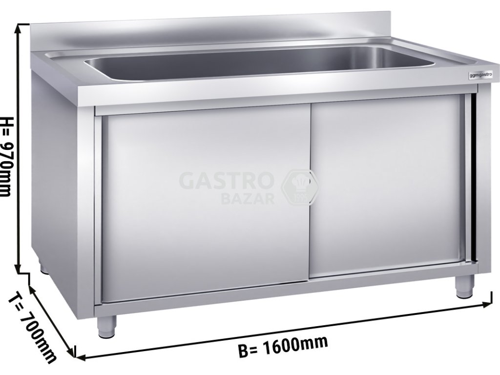 Nerezový dřez na černé nádobí 1,6 m, 1 dřez s posuvnými dveřmi, hloubka 70 cm