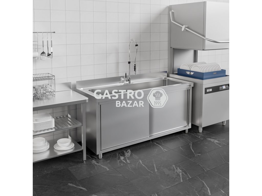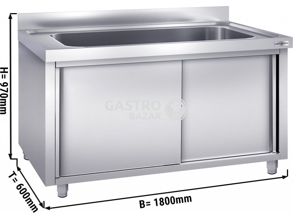 Nerezový dřez na černé nádobí 1,8 m, 1 dřez s posuvnými dveřmi, hloubka 60 cm