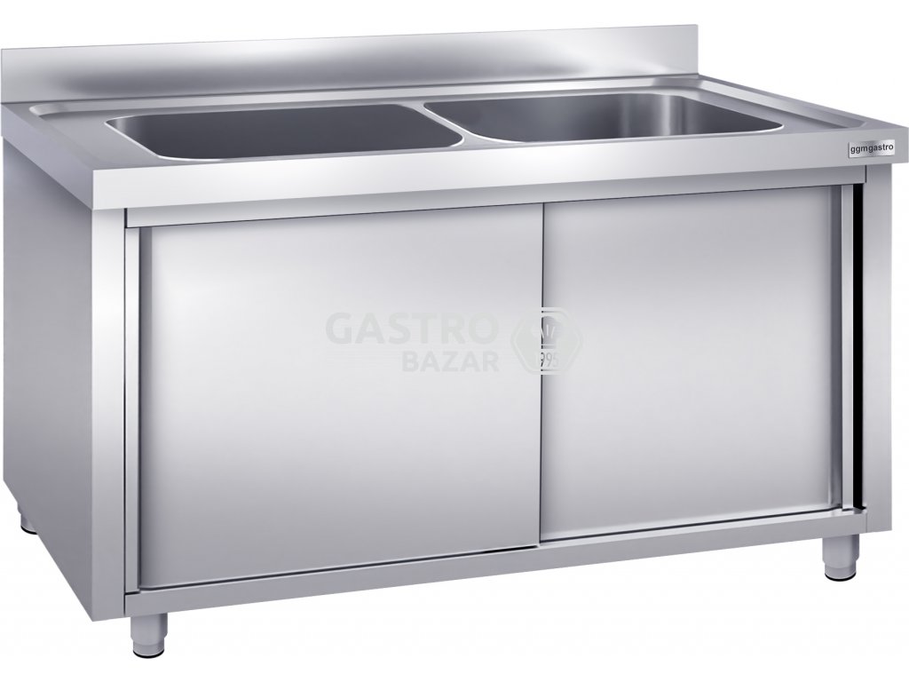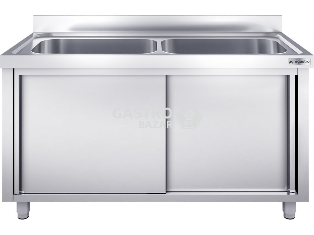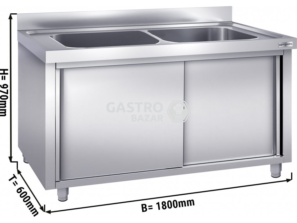 Nerezový dřez na černé nádobí 1,8 m, 2 dřezy s posuvnými dveřmi, hloubka 60 cm