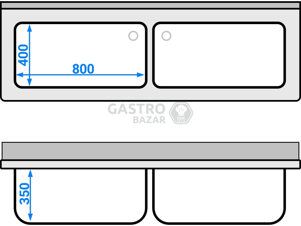 - Rozměry dřezu: Š x H x V: 800 x 400 x 350 mm