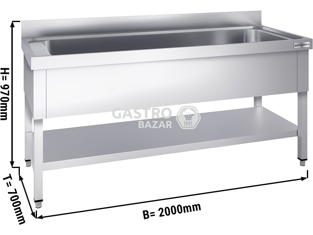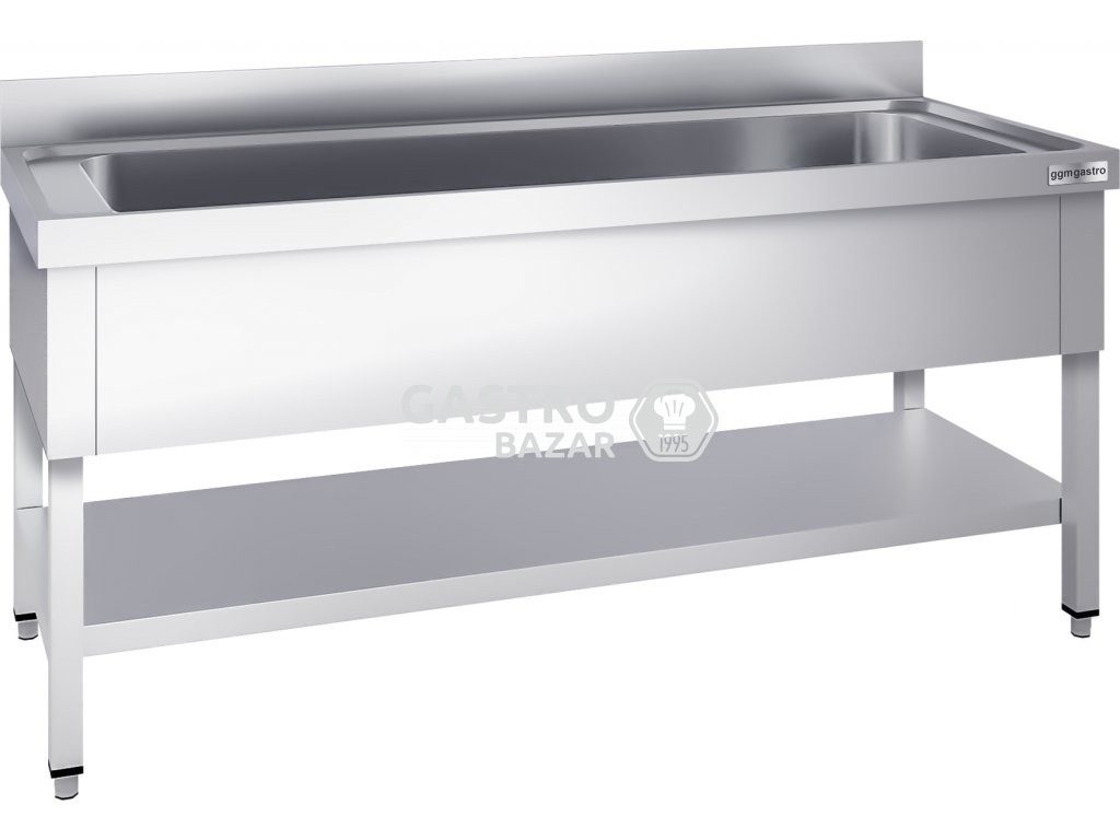 Nerezový dřez na černé nádobí se spodní policí 2,0 m, 1 umyvadlo, hloubka 70 cm