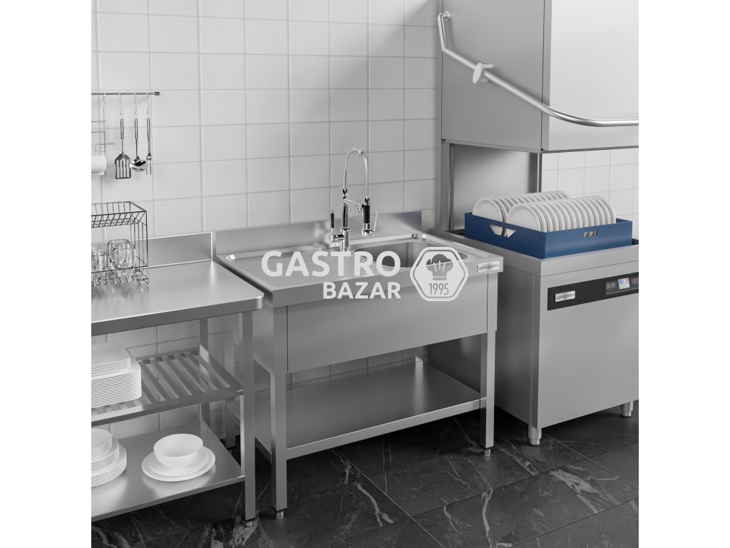 Nerezový dřez PREMIUM - se spodní policí - 1,4 m - 1 umyvadlo vpravo