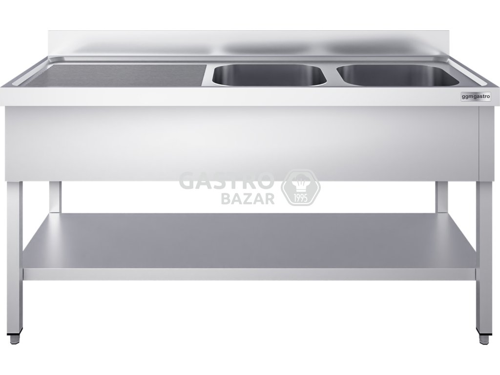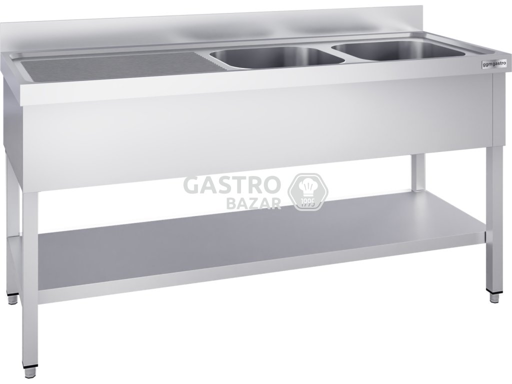 Nerezový dřez PREMIUM - se spodní policí - 1,4 m - 2 umyvadla vpravo