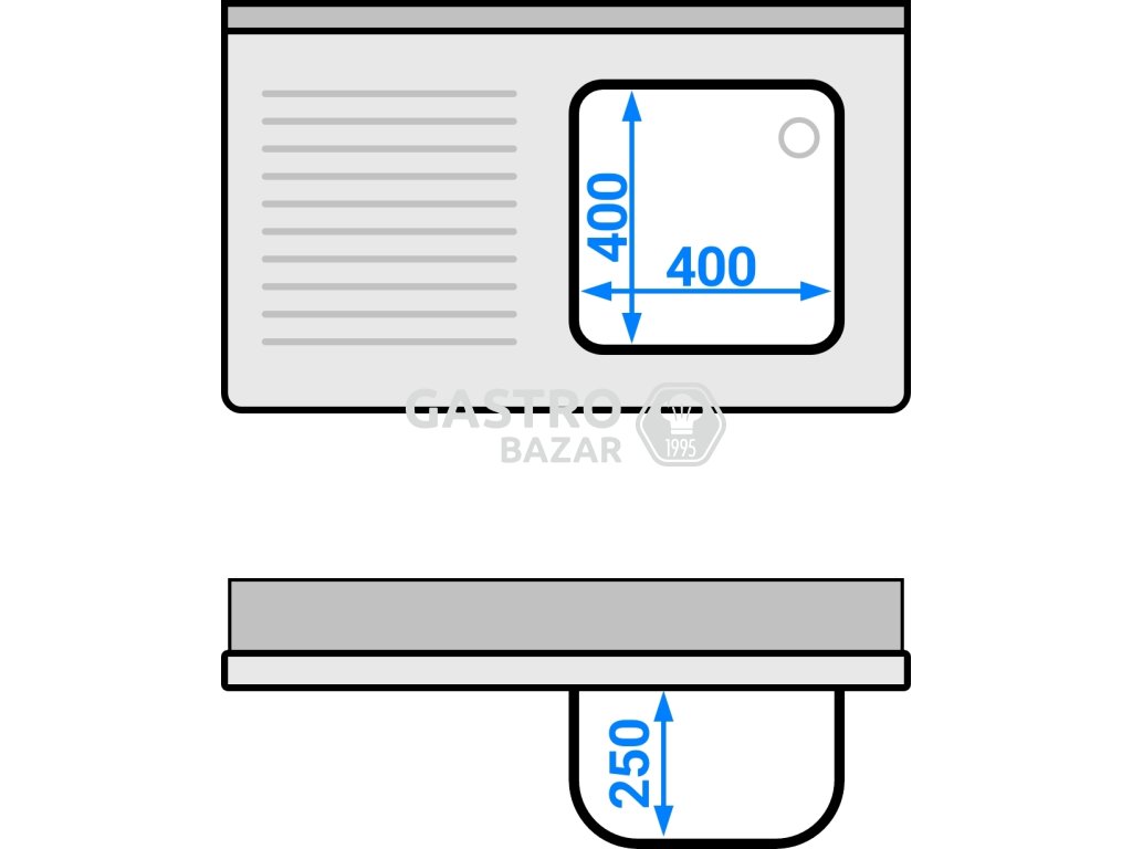 Dřezová skříňka PREMIUM z nerezové oceli - se spodní policí - 1,0 m - 1 dřez vpravo - D 40 x Š 40 x H 25 cm