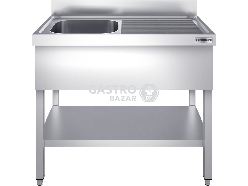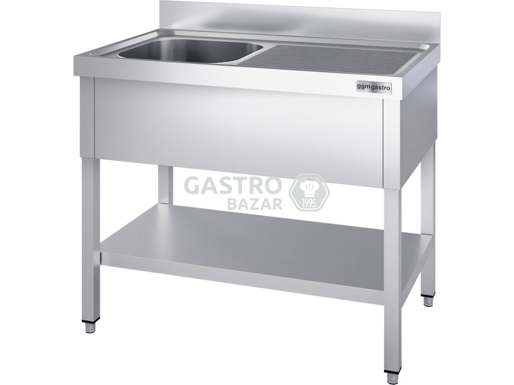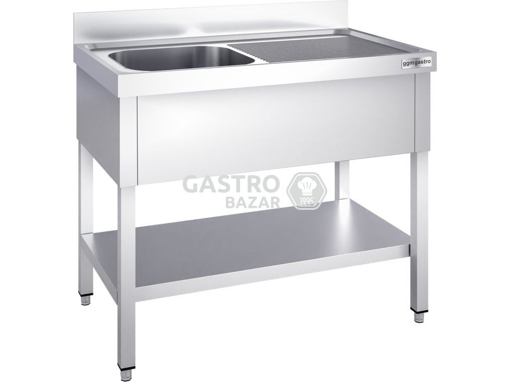 Nerezový dřez PREMIUM - s policí - 1,2 m - 1 umyvadlo vlevo