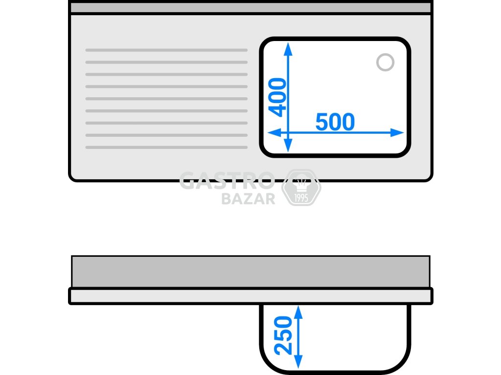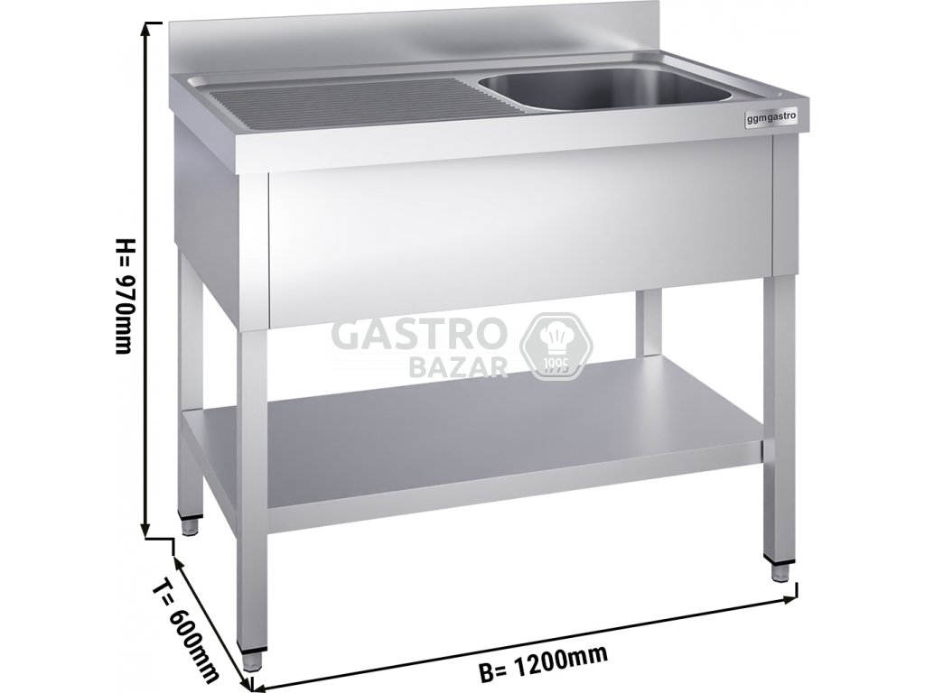 Dřezová skříňka PREMIUM z nerezové oceli - se spodní policí - 1,2 m - 1 dřez vpravo - D 50 x š 40 x H 25 cm
