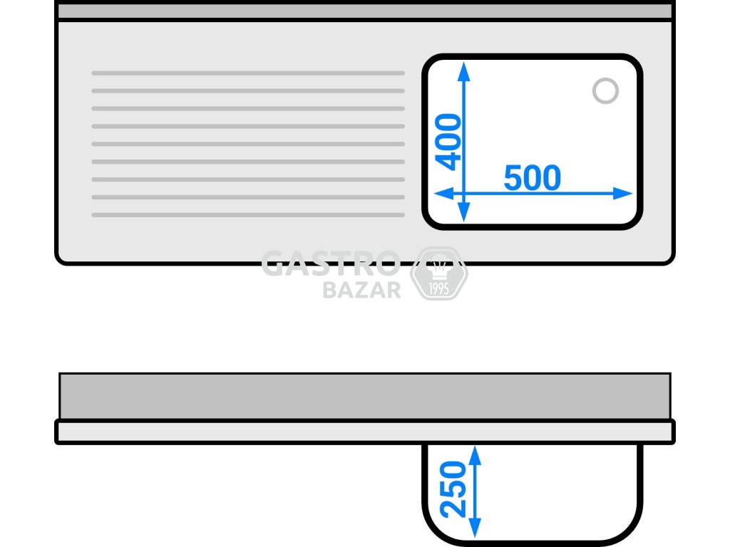 Mycí stůl PREMIUM z nerezové oceli - se spodní policí - 1,4 m - 1 dřez vpravo - D 50 x Š 40 x H 25 cm