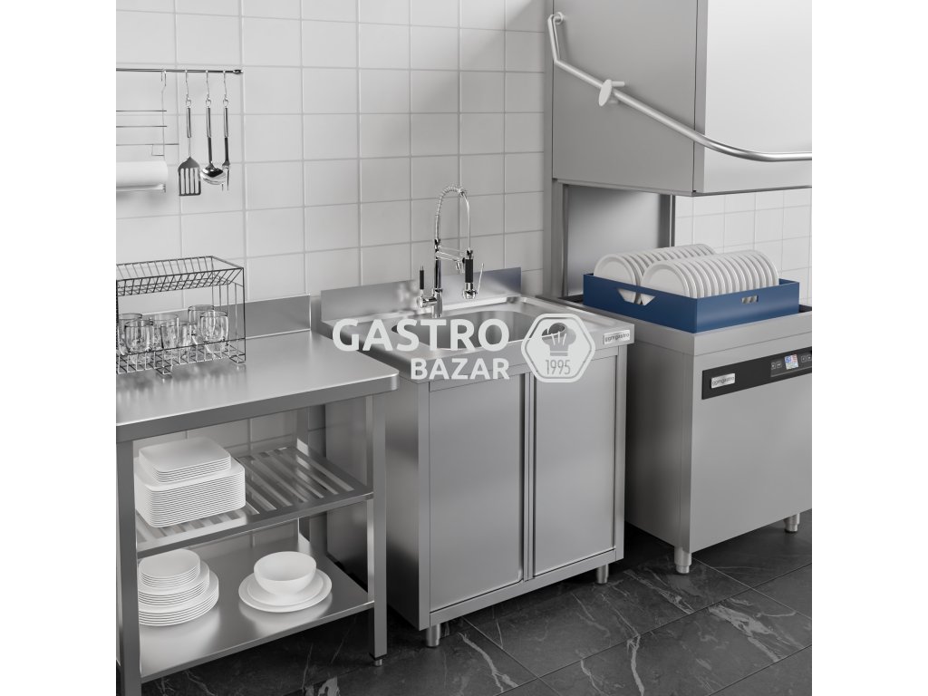 Nerezový dřez s dveřmi - 0,8 m - 1 dřez