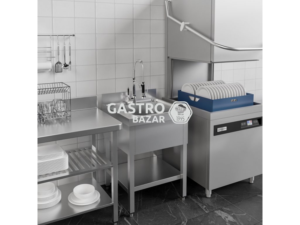 Dřezová skříňka PREMIUM z nerezové oceli - se spodní policí - 0,6 m - 1 dřez - D 40 x Š 40 x H 25 cm