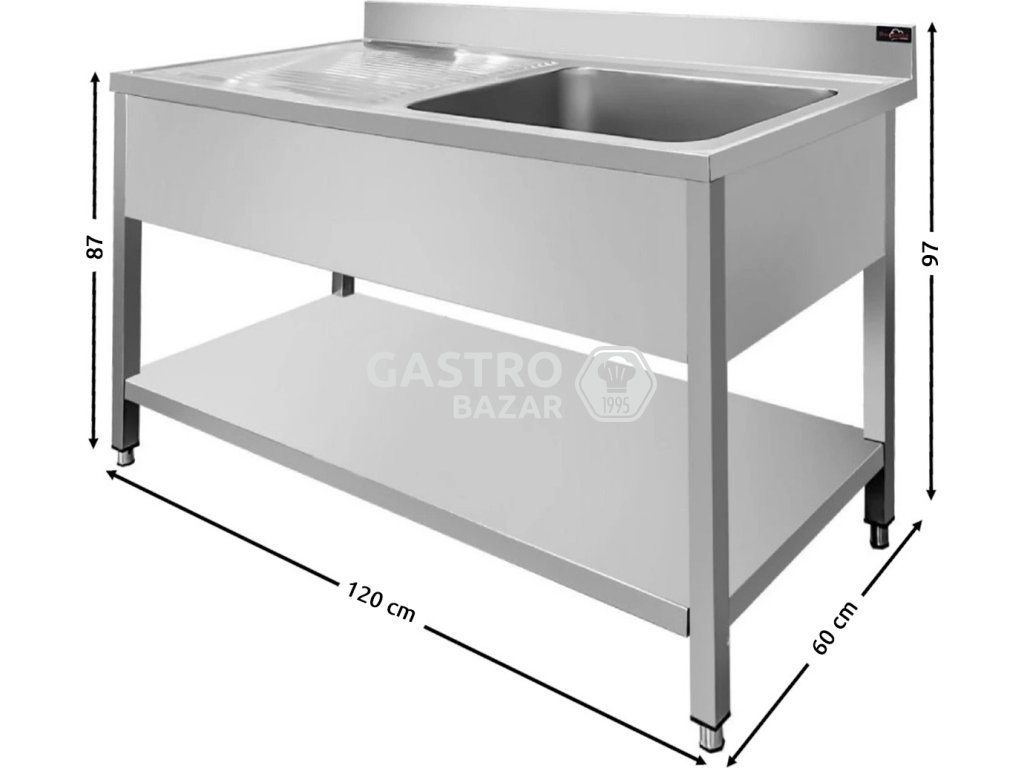 Nerezový dřez - s policí- 1,2 m - 1 umyvadlo vpravo