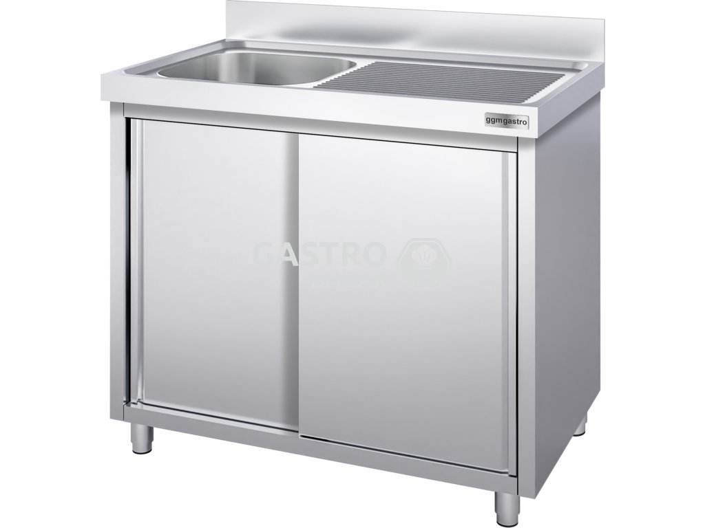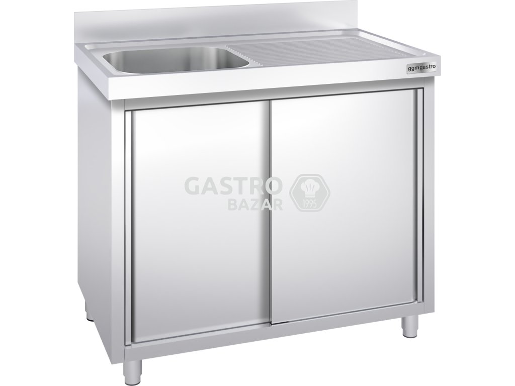 Nerezový dřez s posuvnými dveřmi 1,4 m, 1 dřez vlevo, hloubka 60 cm