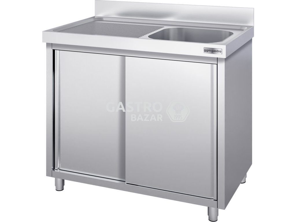 Nerezový dřez s posuvnými dveřmi 1,6 m, 1 dřez vpravo, hloubka 70 cm