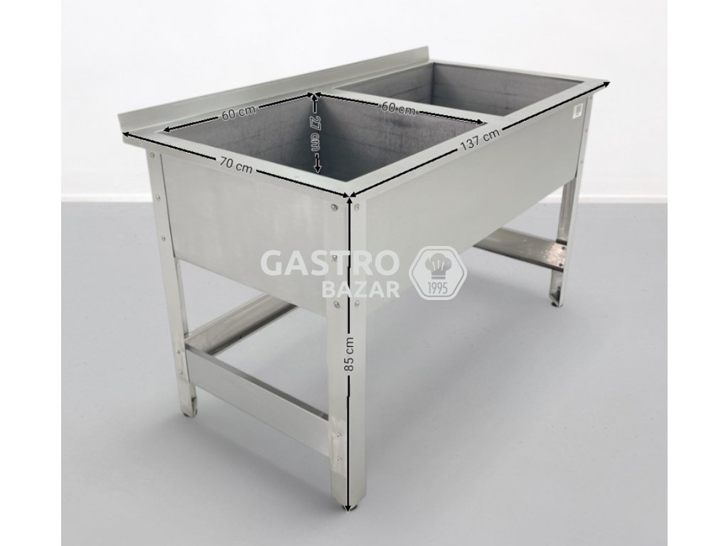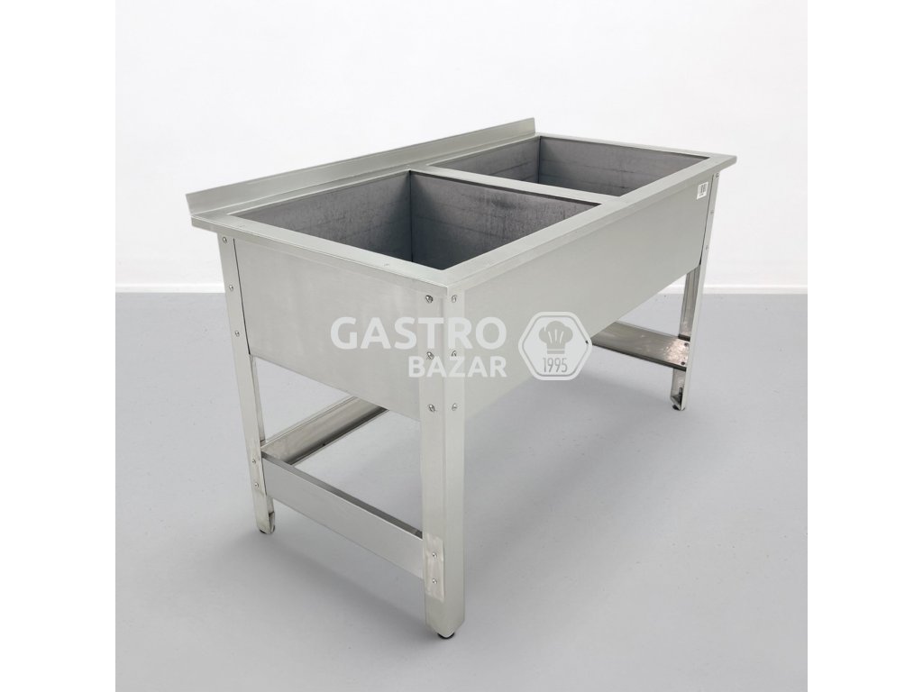 Nabízíme použitý profesionální nerezový dvoudřez vhodný do kuchyní, gastroprovozů nebo cateringových zázemí.