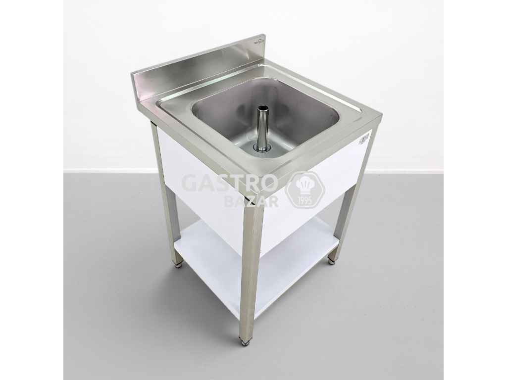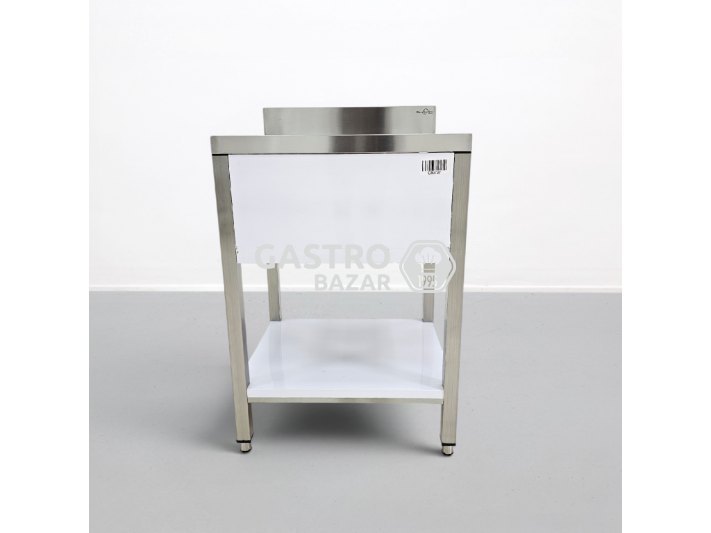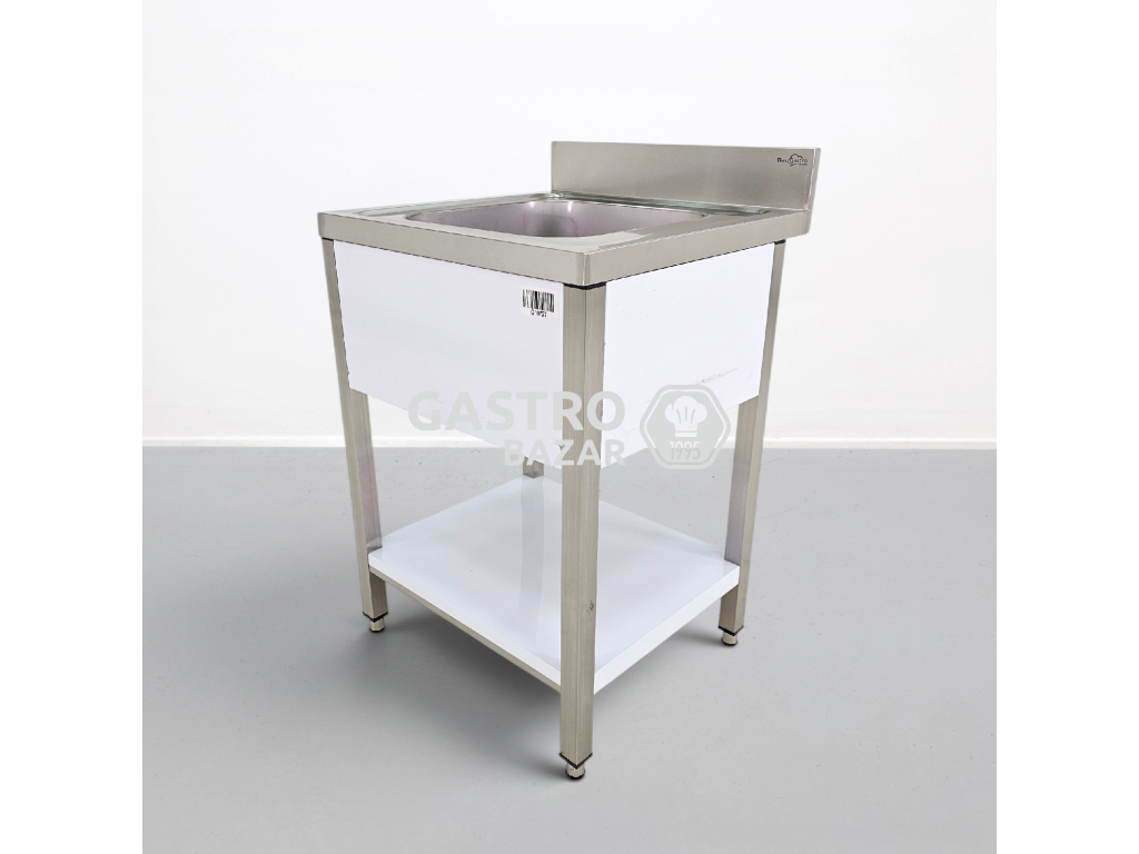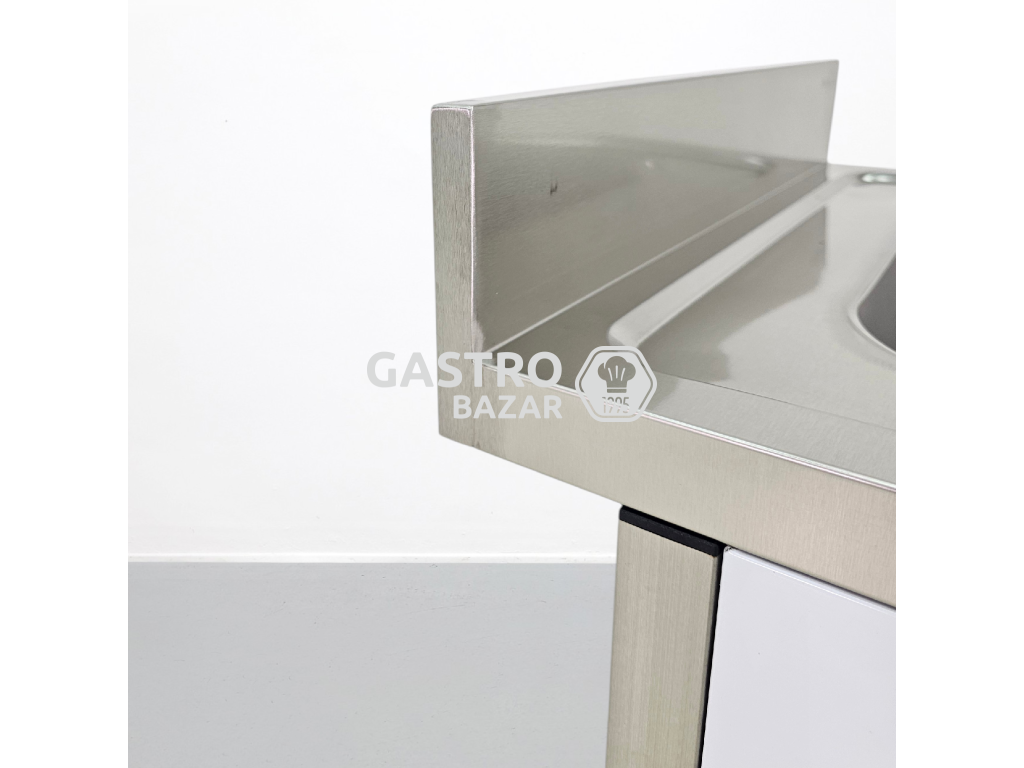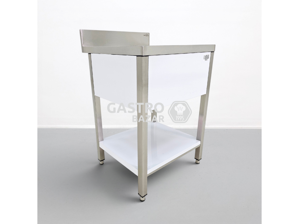 Nerezový mycí stůl PREMIUM s jedním dřezem, spodní policí a zadním lemem 0,6 m